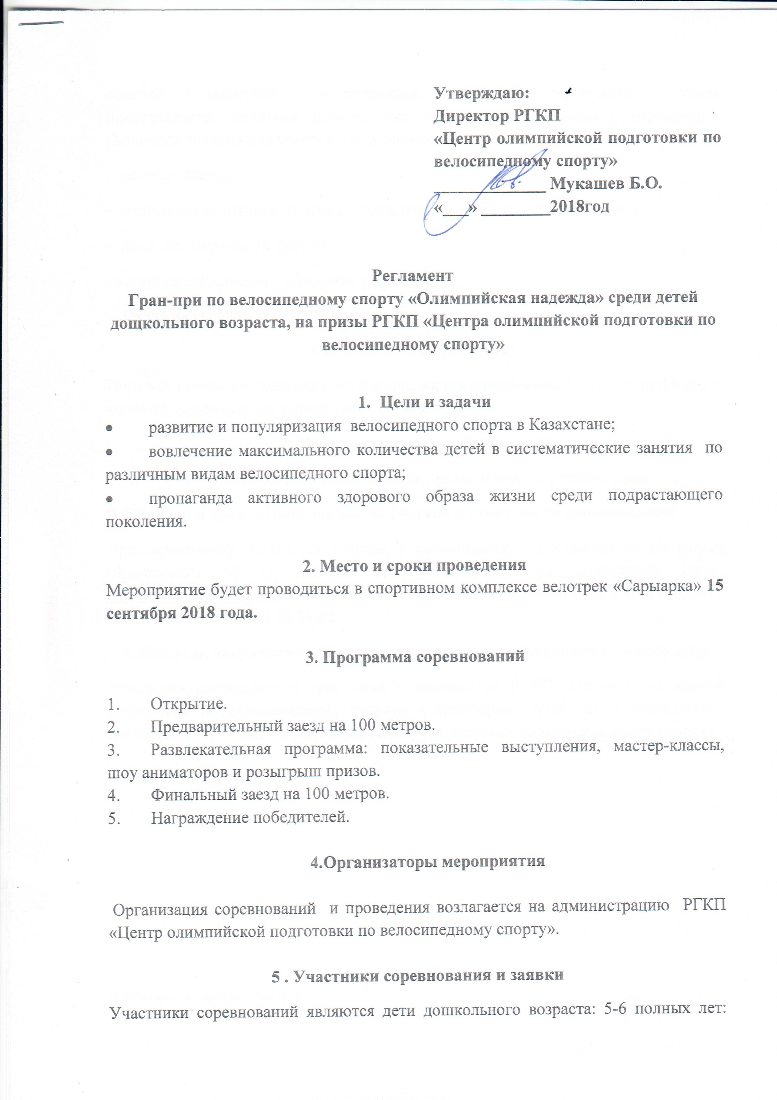 September 15 in the republican cycle track “Saryarka” is expected to hold the II annual Grand Prix competition in cycling “Olympic Hope”, for the prizes of the Center for Olympic training in cycling among children of preschool age.